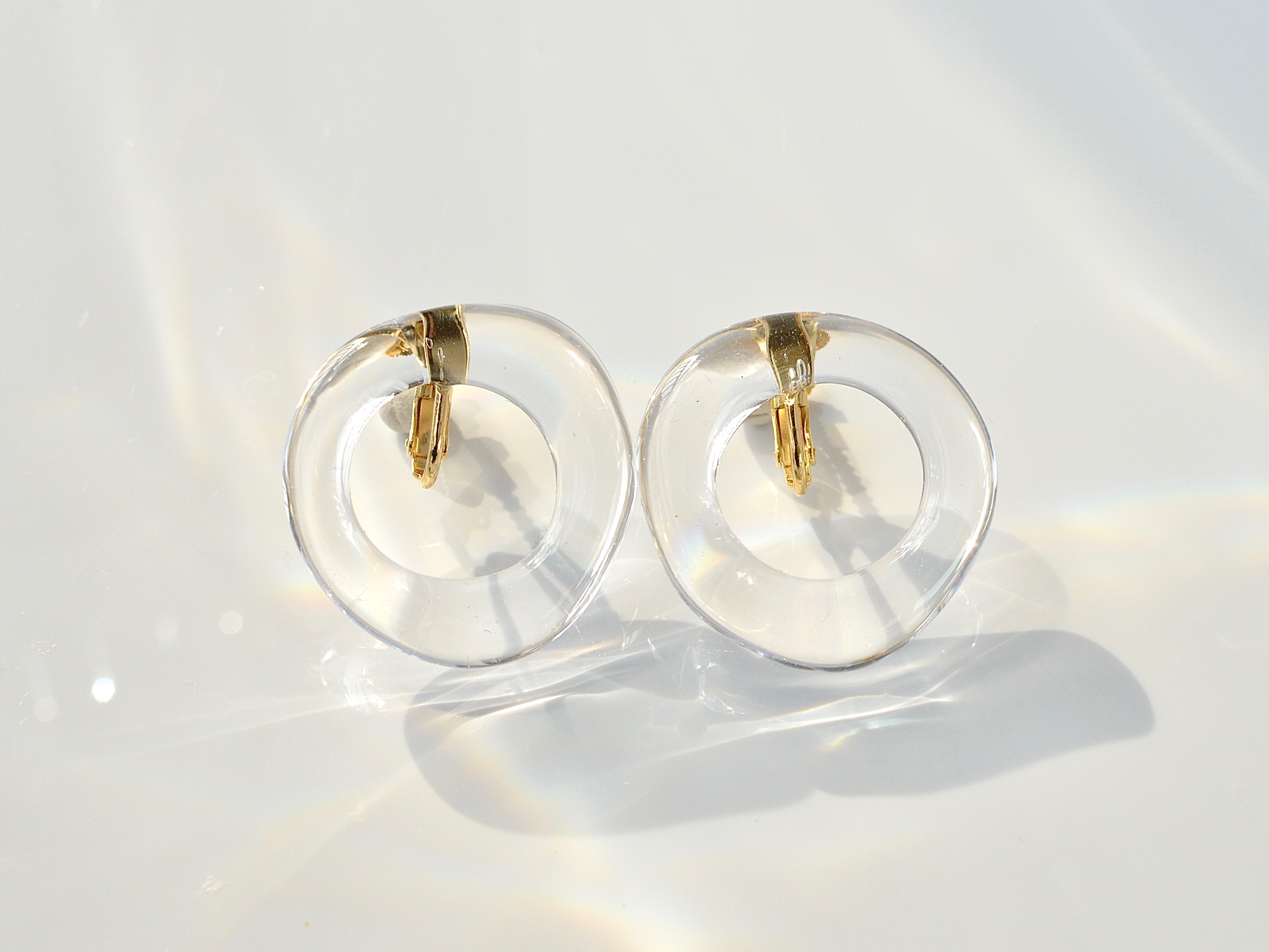 - 透明感のあるクリア素材が美しい、フープ型イヤリングです。