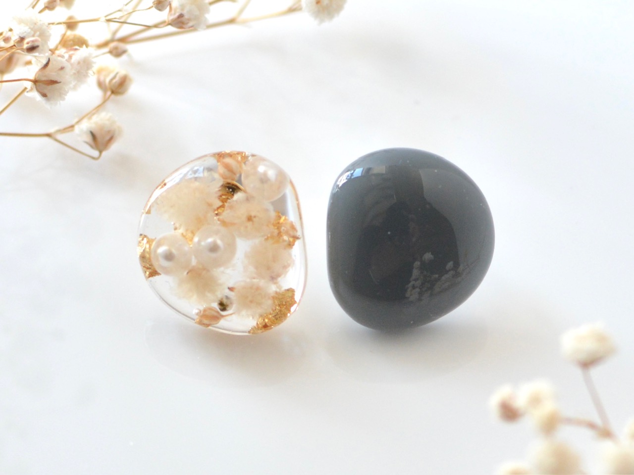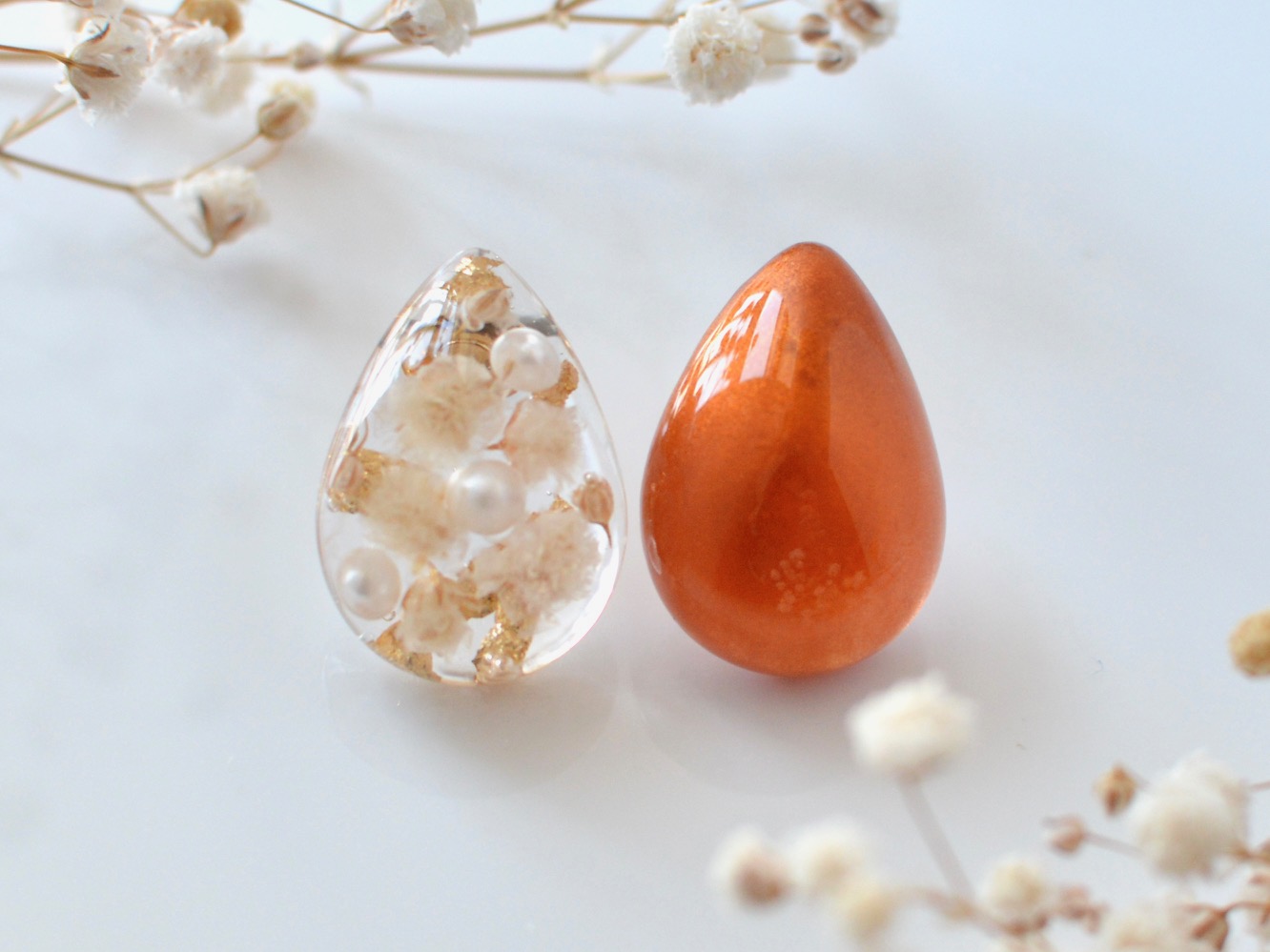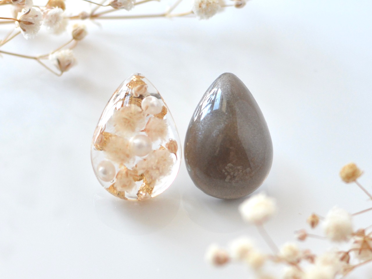 かすみ草とパールのイヤリング